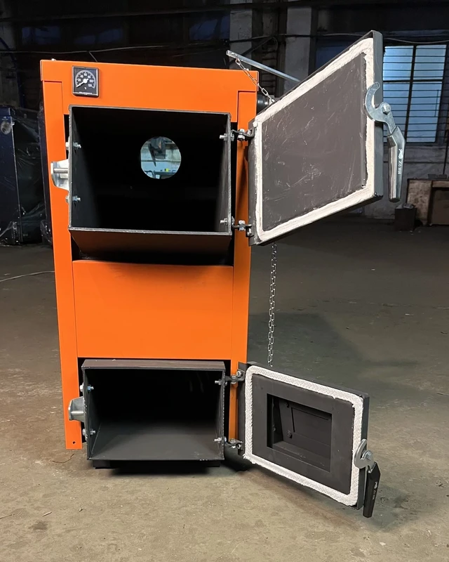 Цей котел має бюджетне споживання палива і працює до 12-ти годин на одному завантаженні дров.