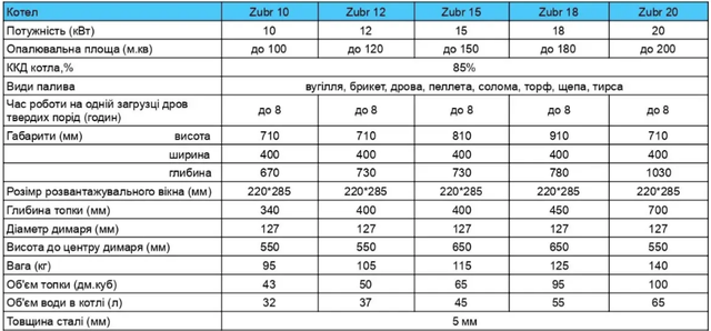 Бюджетні котли тривалого горіння Zubr Classic — класичний котел твердопаливний із пластинчастим теплообмінником. Товщина сталі завантажувальної камери та теплообмінника 5 мм, вироблені з котлової сталі 09Г2С.
