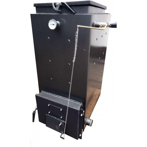 Даний котел призначений для спалювання будь-якого виду палива, вугілля, брикети, дрова (сухі та вологі), тріска, тирса, і побутові відходи. Іншими словами, котел-утилізатор. Унікальним є те, що котел при спалюванні вологих дров ви не побачите ні конденсати, ні смол. Тривалість роботи котла на одному завантаженні дров від 18 до 24 годин (іноді і більше), на вугіллі до 5 діб. Котел має форсунку для вторинного допалювання газів, цим істотно збільшується ККД котла.