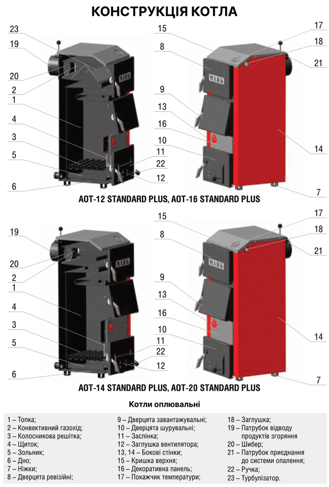 Водогрійні стальні котли серії АОТ СТАНДАРТ ПЛЮС з водоохолоджуваними колосниками, призначені для обігріву приміщень, обладнаних системою водяного опалення з природною або примусовою циркуляцією теплоносія.